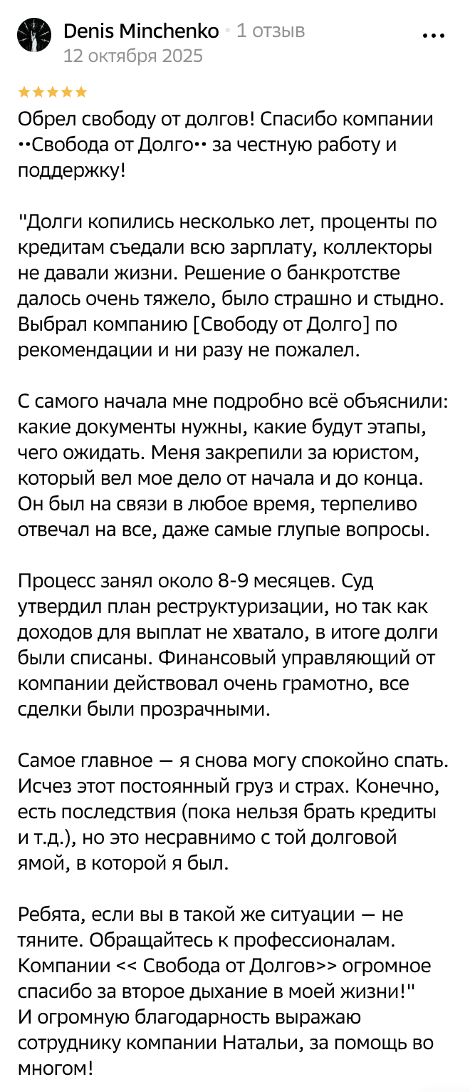 Отзывы людей прошедших банкротство